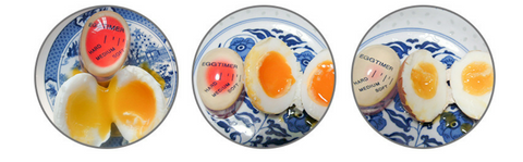 - 【Easy to use but absolutely ingenious】You just drop perfect egg timers into the water with your eggs, turn on the heat, and watch it begins to change color(from outside in). Three lines on the timer (soft, medium, hard) indicate different doneness of yolk. Then you just turn off your stove and they are ready!
